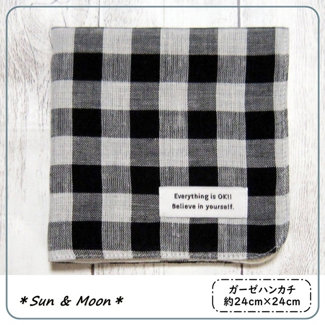 【大人のガーゼハンカチ】チェック柄・ブラック