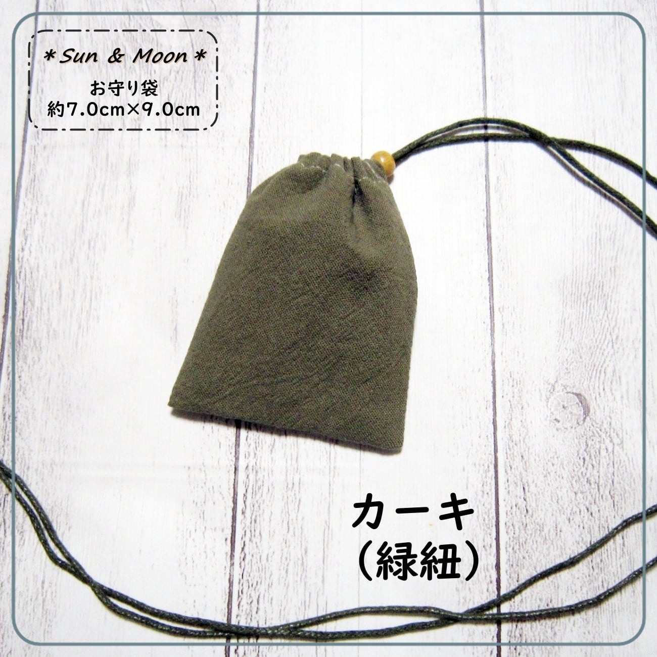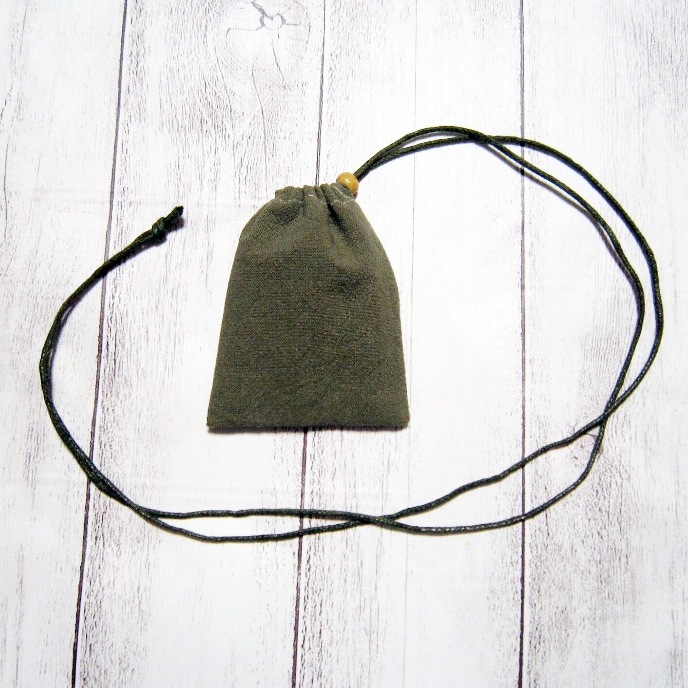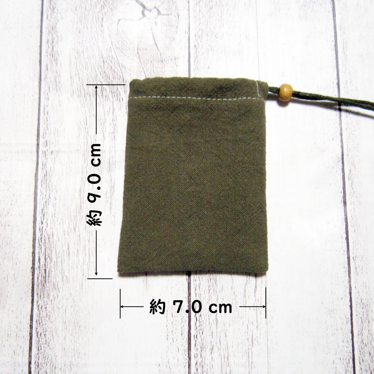【カーキ(緑紐)】(綿スラブワッシャー・やや厚め)首から下げられる、巾着袋・お守り袋・ストーン入れ・鍵袋