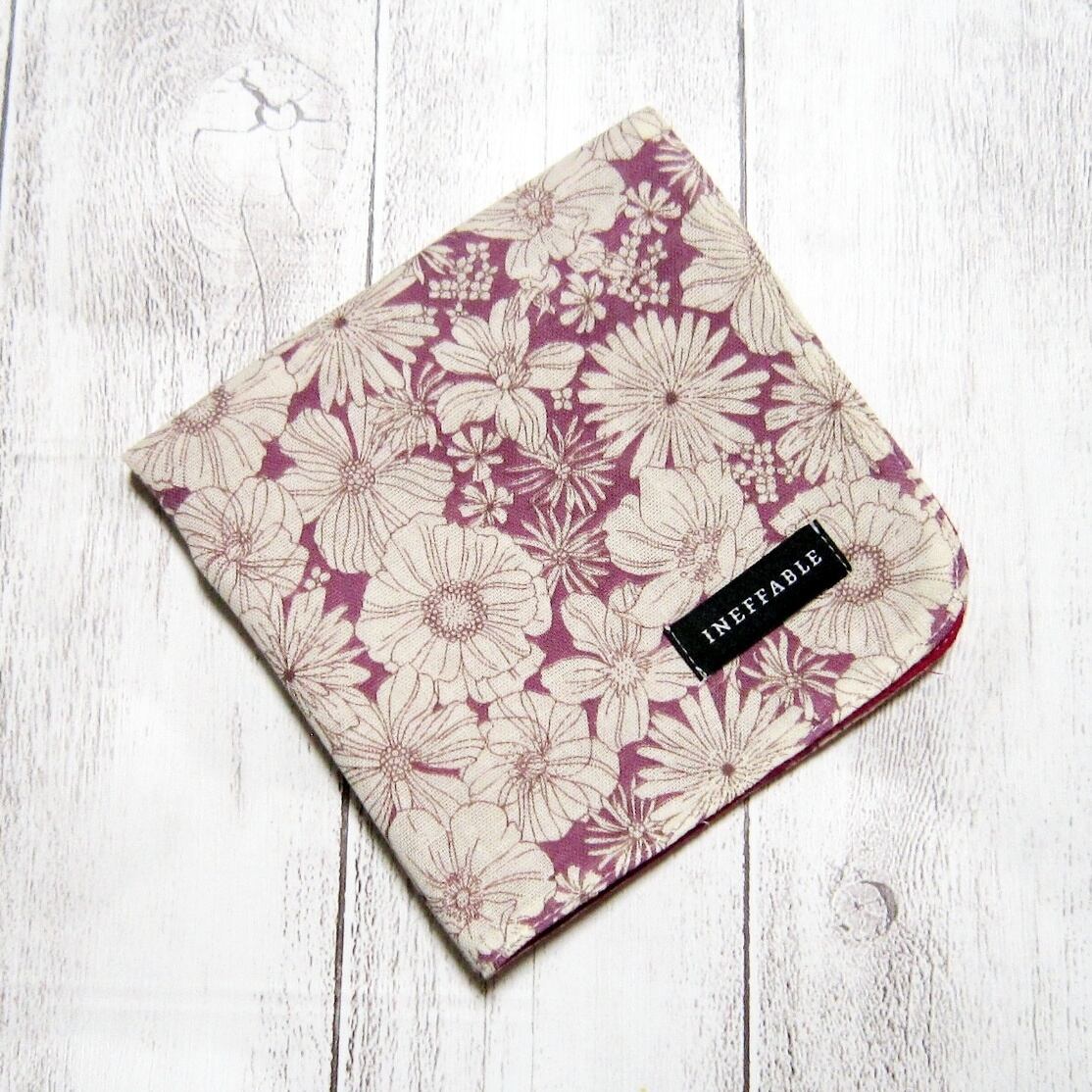 【大人のガーゼハンカチ】線画の花柄・ピンクパープル