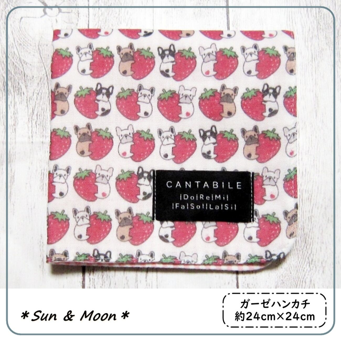 【大人のガーゼハンカチ】犬とイチゴと