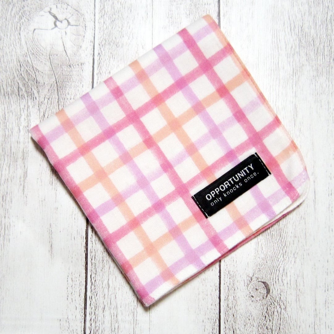 【大人のガーゼハンカチ】格子チェック・ピンク系