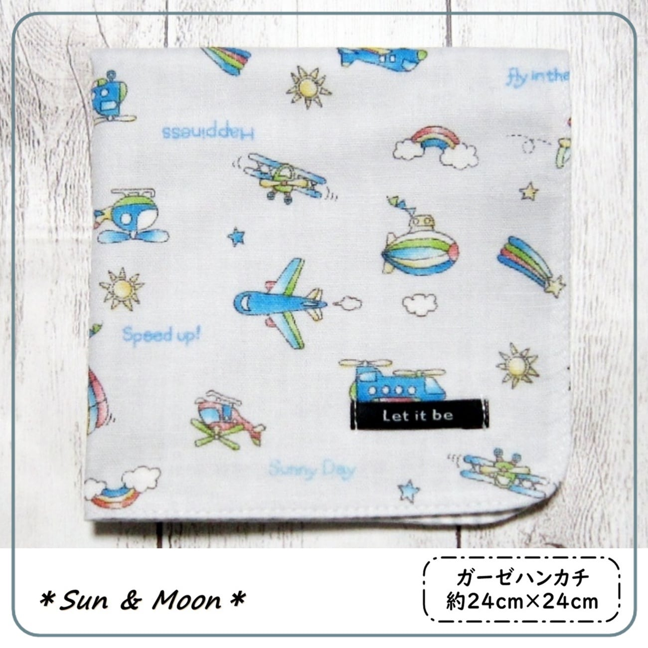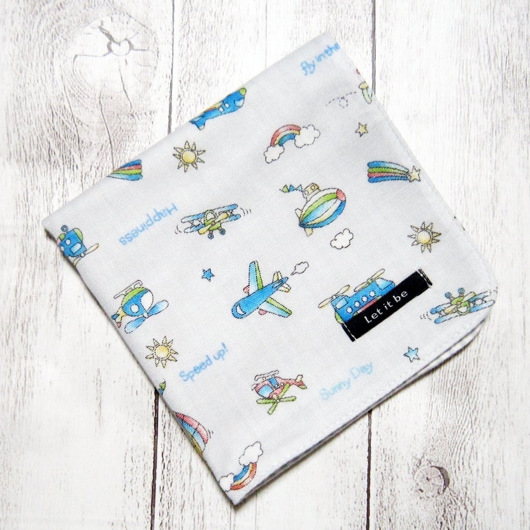 【大人のガーゼハンカチ】飛行機・ヘリコプター・水色