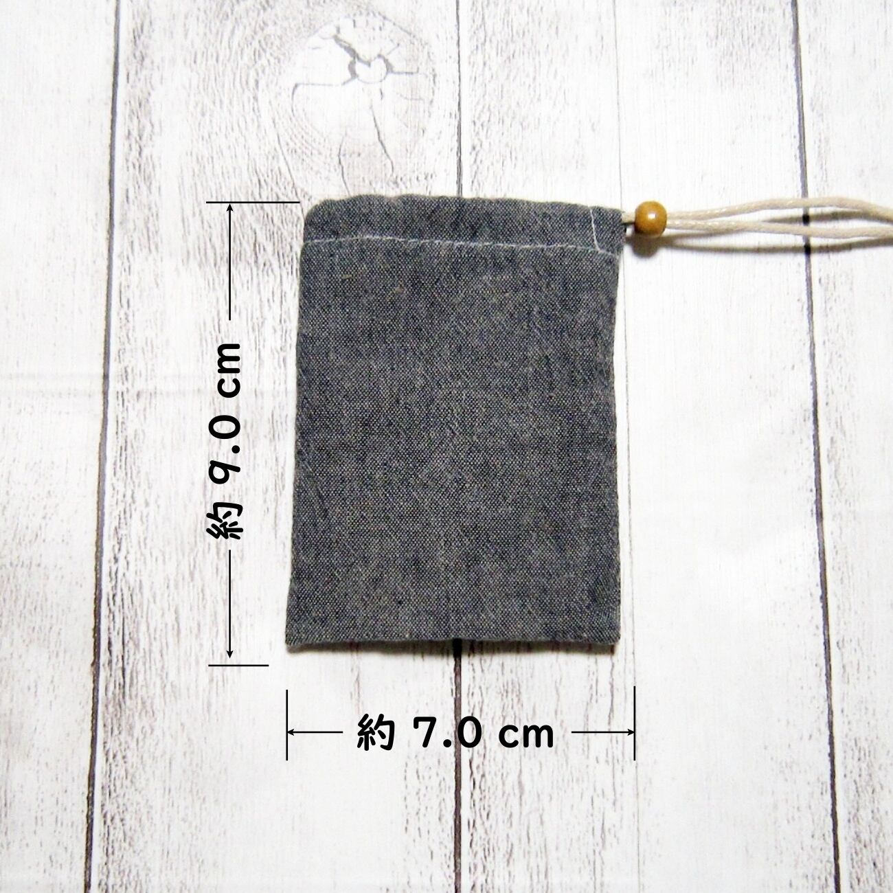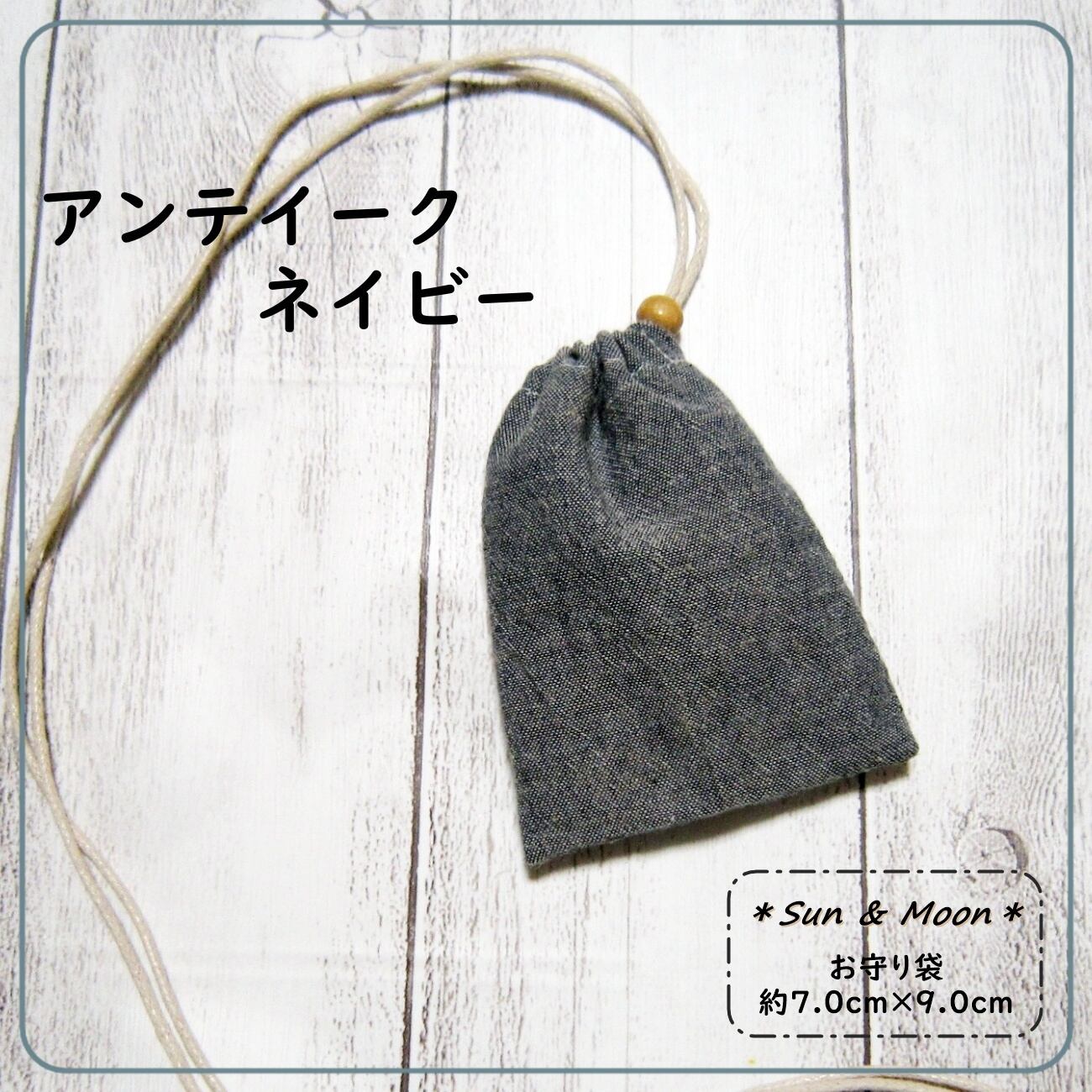 【アンティークネイビー】(コットンリネンダンガリー)首から下げられる、巾着袋・お守り袋・ストーン入れ・鍵袋