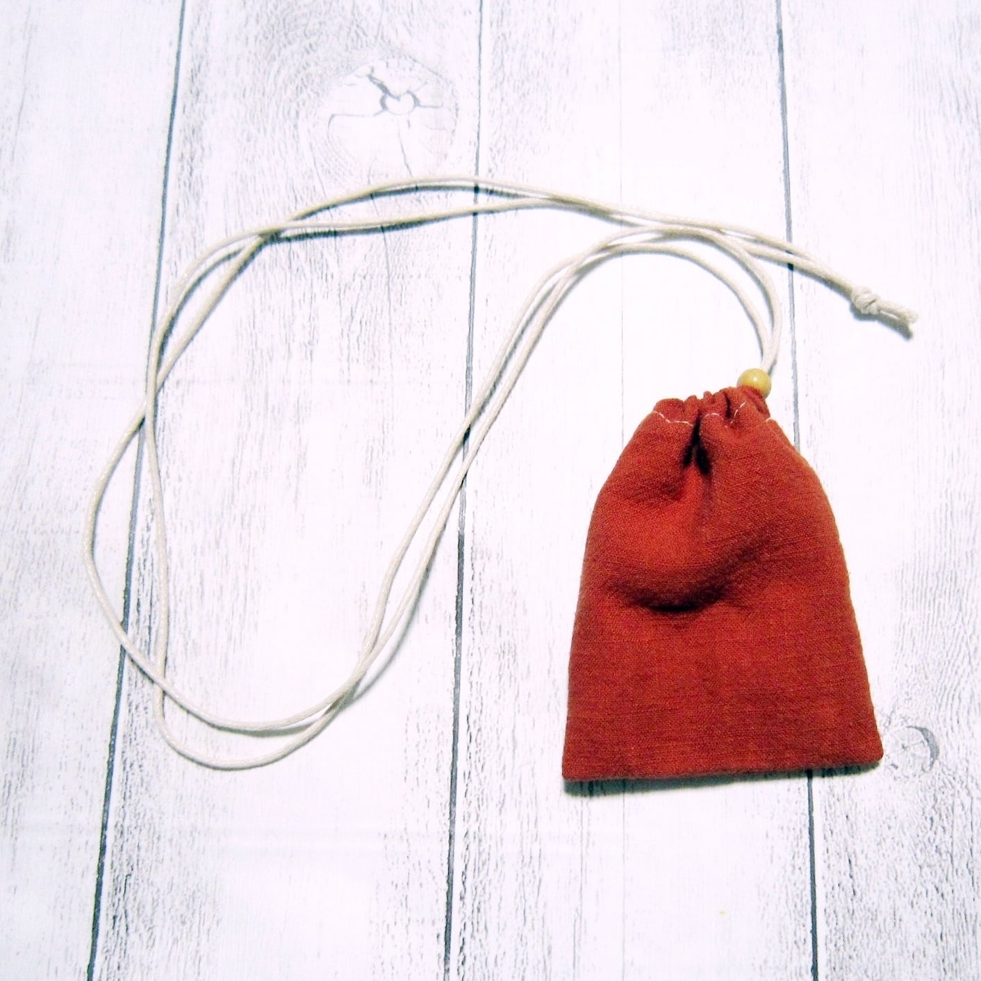 【テラコッタ】首から下げられる、巾着袋・お守り袋・ストーン入れ・鍵袋