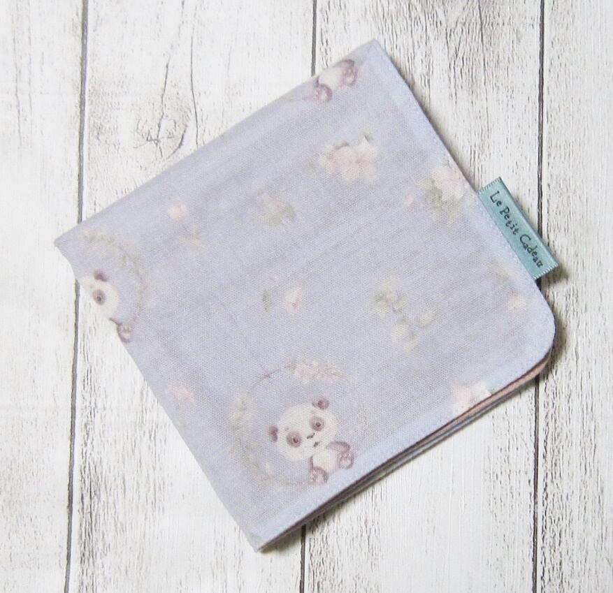 【大人のガーゼハンカチ】淡色・パンダとお花・約24cm×24cm