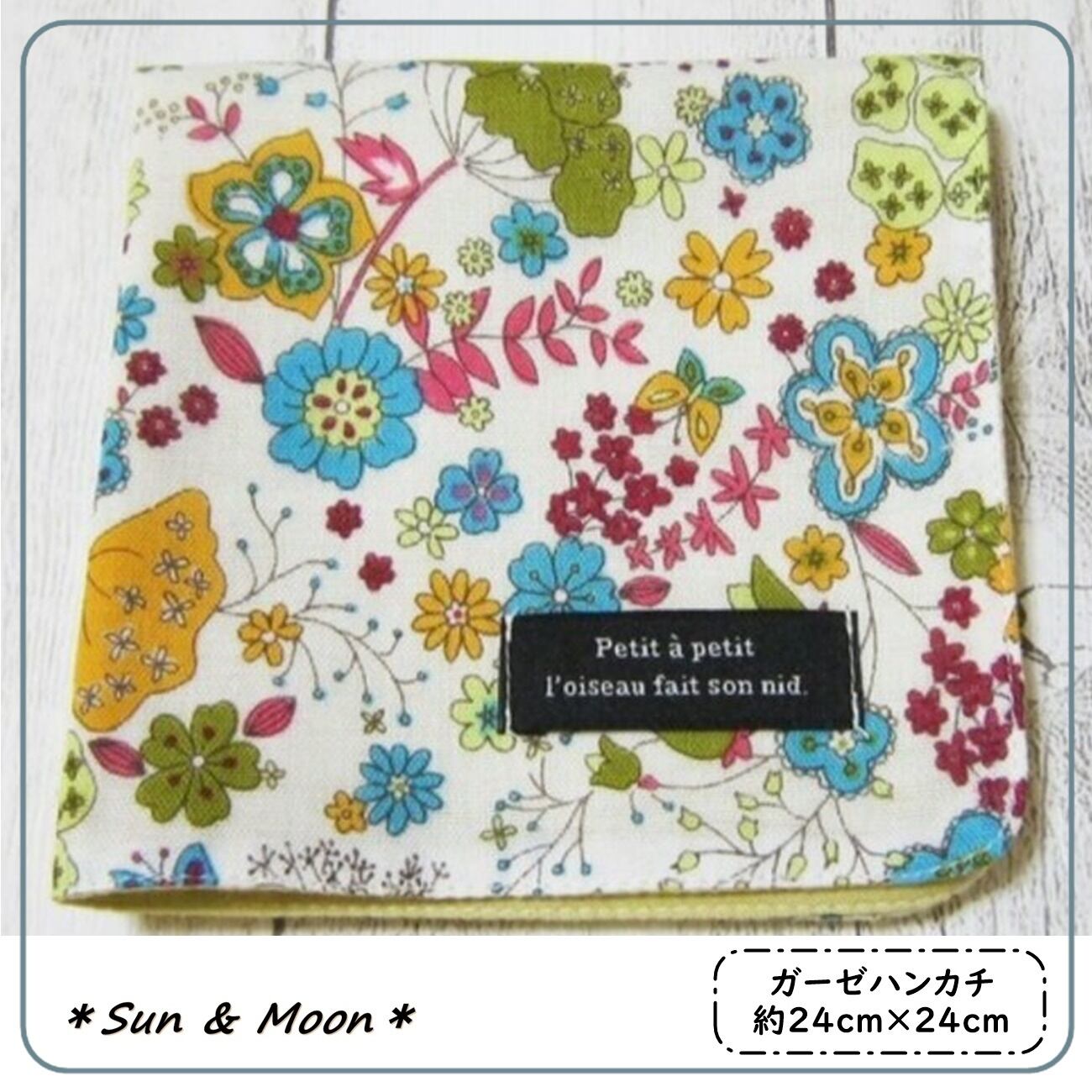 【大人のガーゼハンカチ】フラワーガーデン・カラフル系・約24cm×24cm