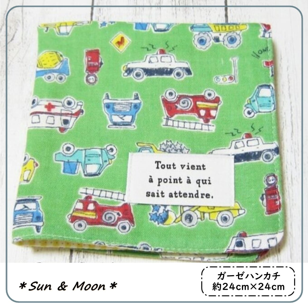 【大人のガーゼハンカチ】働く車・みどり・約24cm×24cm