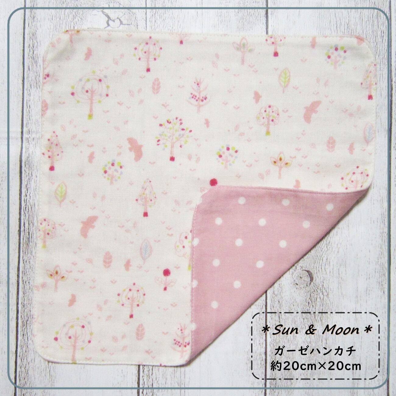 【子供のガーゼハンカチ】鳥と木・ホワイト・約20cm×20cm