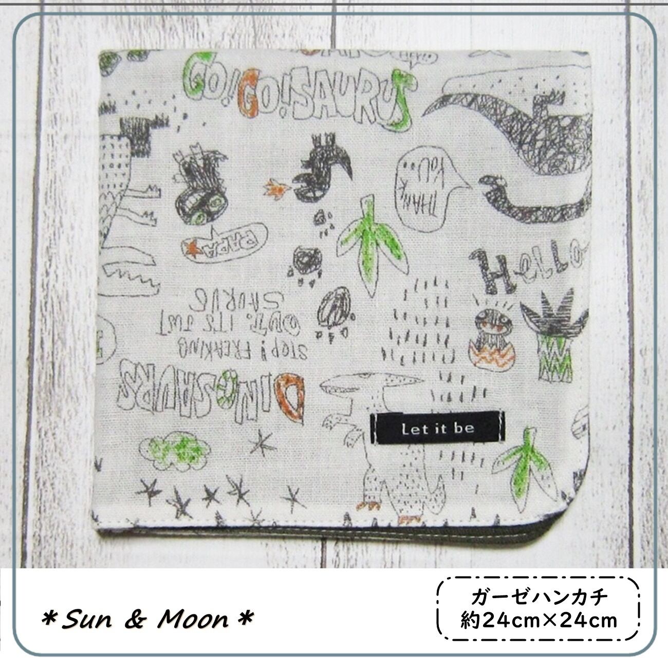 【大人のガーゼハンカチ】GOGOザウルス・恐竜・ホワイト・約24cm×24cm