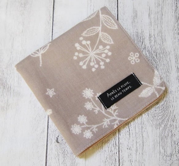 【大人のガーゼハンカチ】刺繍のようなデザインがかわいい♪グレー(ココア)・約24cm×24cm