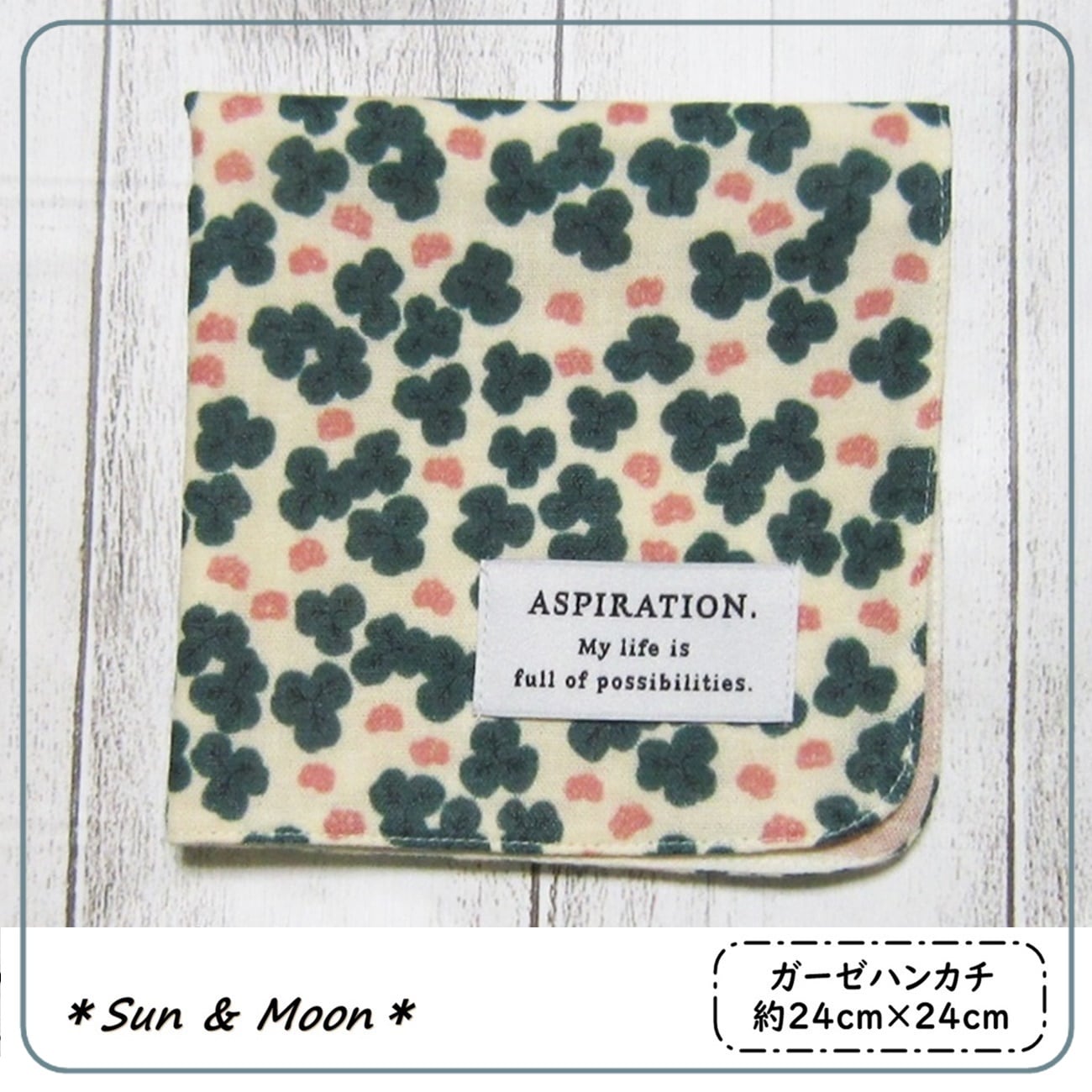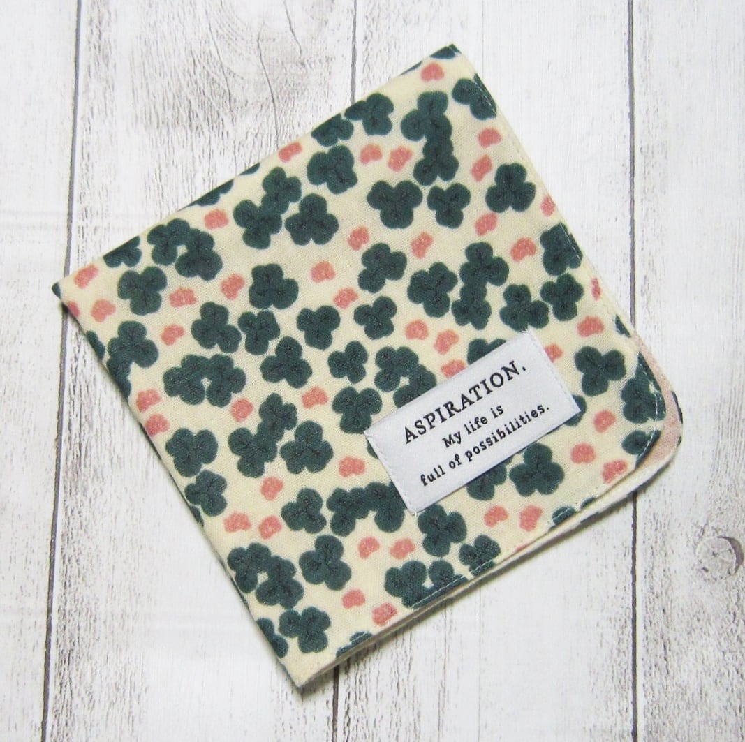 【大人のガーゼハンカチ】小さなクローバー・クリーム・約24cm×24cm