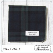 【大人のガーゼハンカチ】チェック柄(大柄)・グリーン