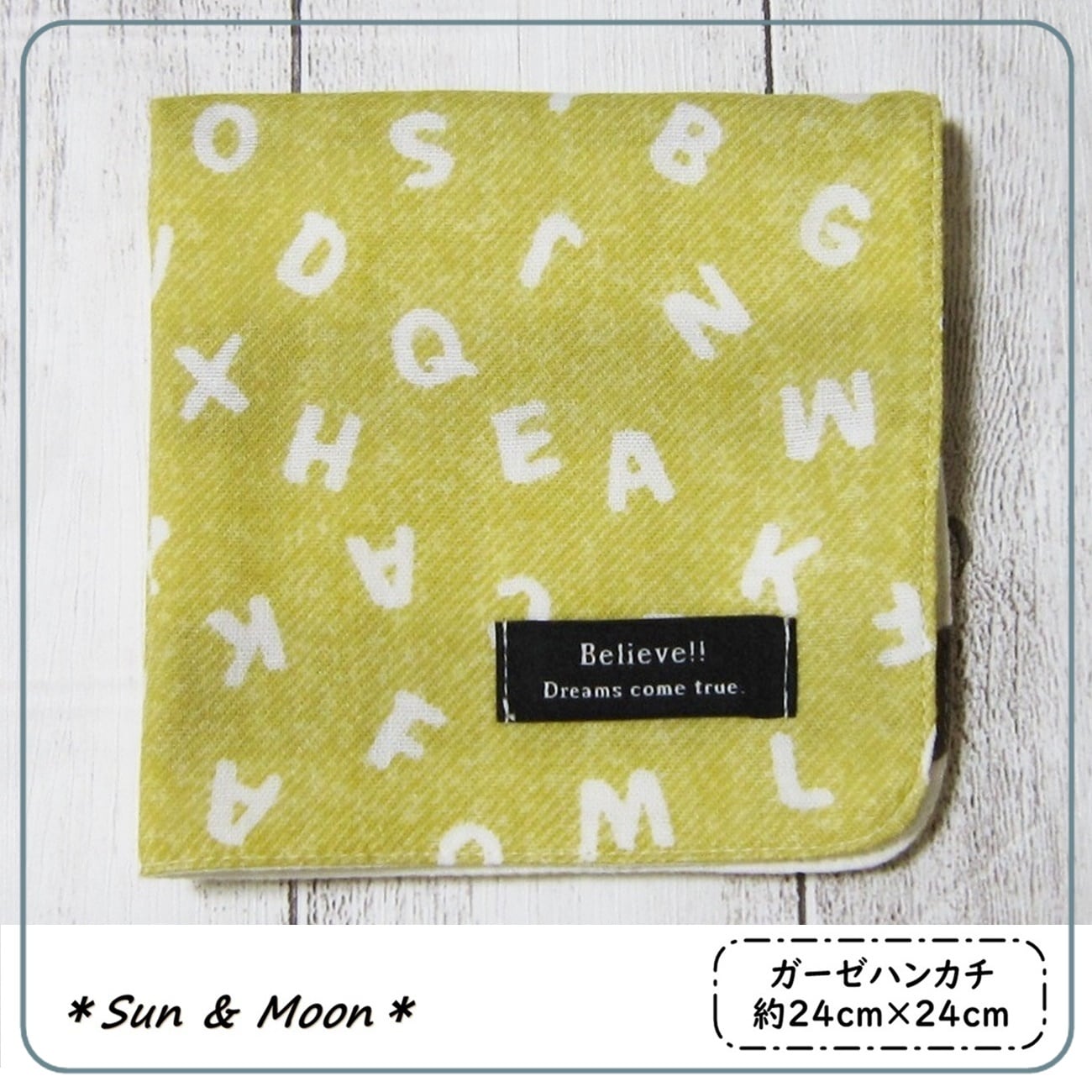 【大人のガーゼハンカチ】アルファベット柄・イエロー