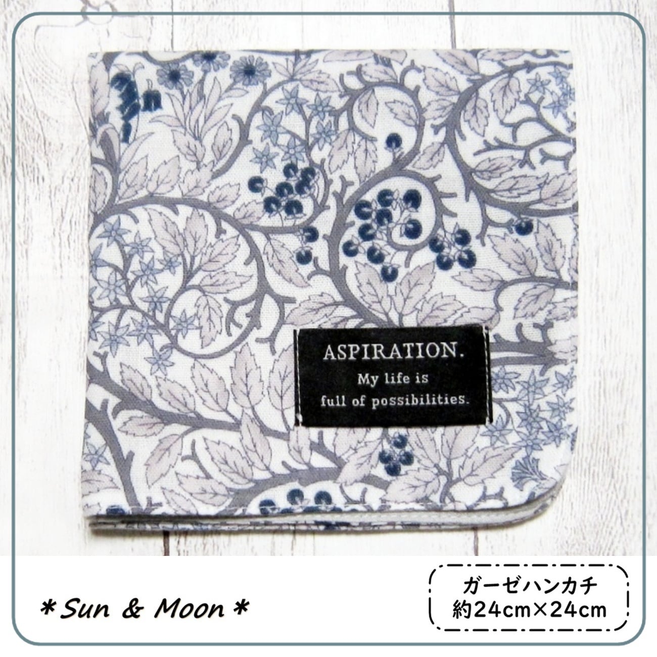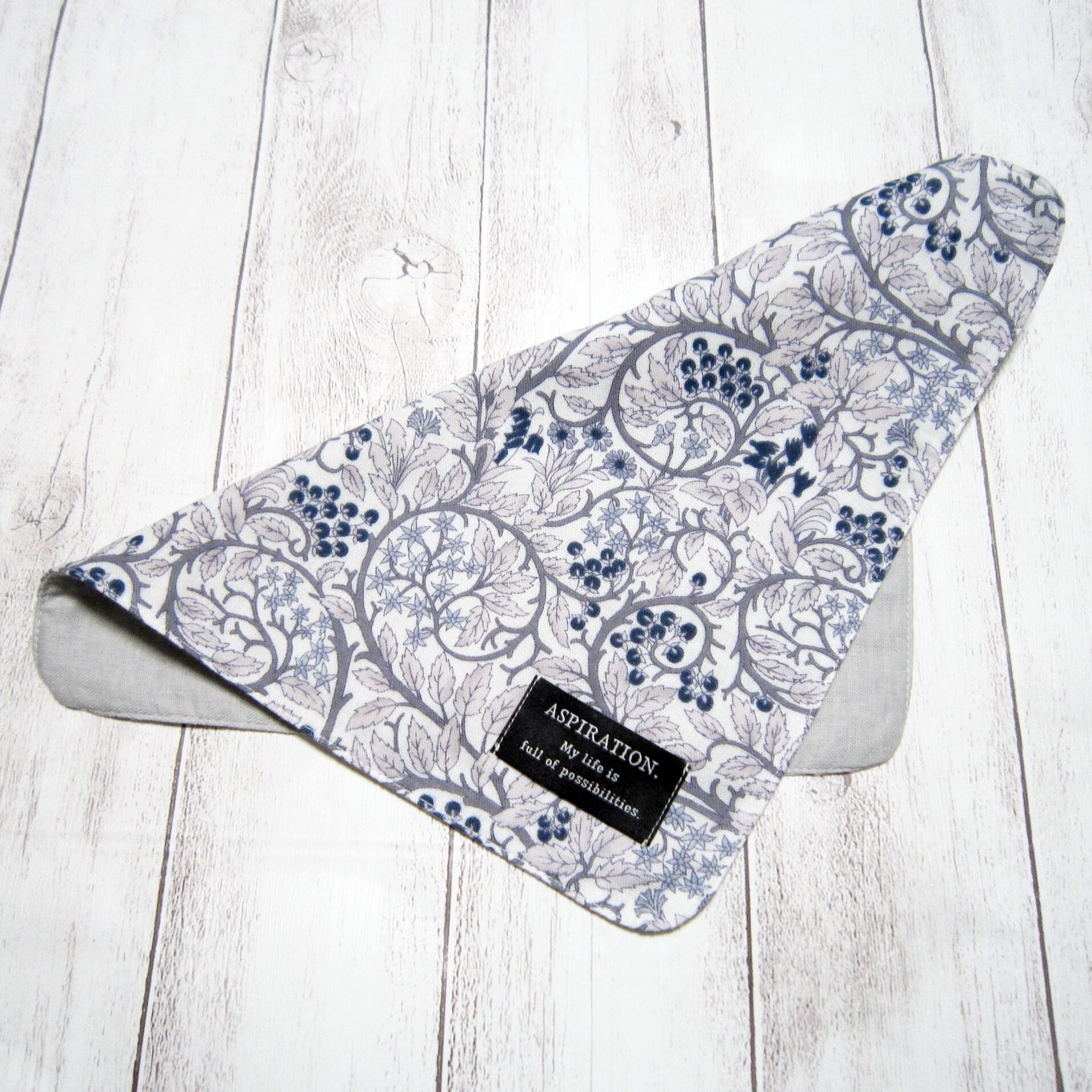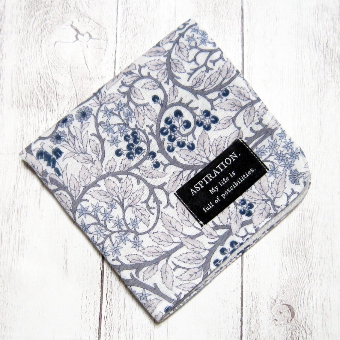 【大人のガーゼハンカチ】木の実・北欧花柄・ライトグレー