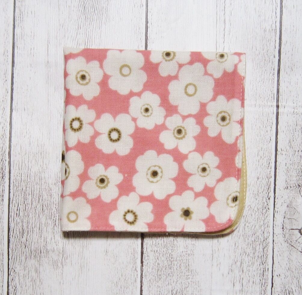 【子供のガーゼハンカチ】シンプル・白花・ピンク