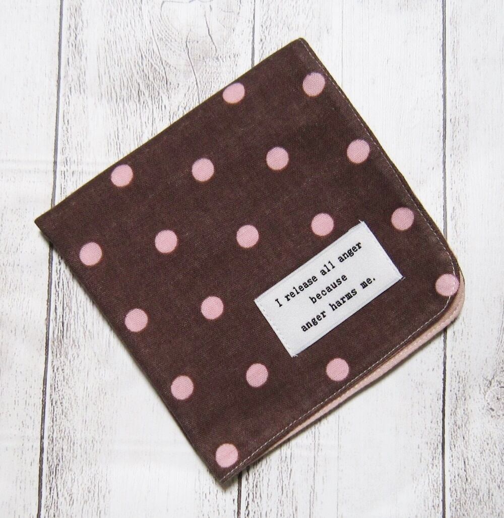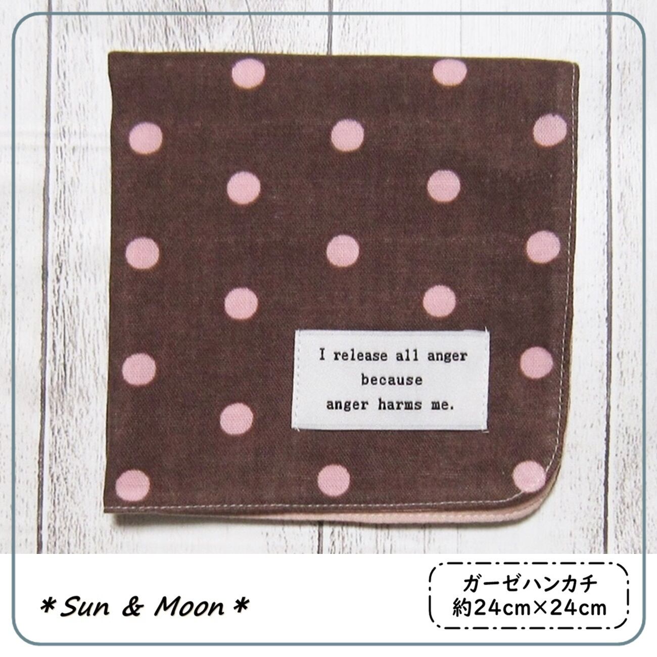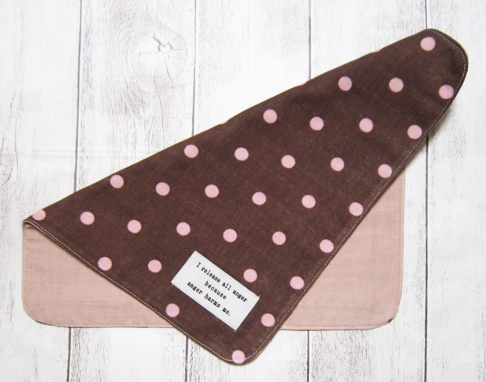 【大人のガーゼハンカチ】シンプルなドット柄・ピンク×ブラウン
