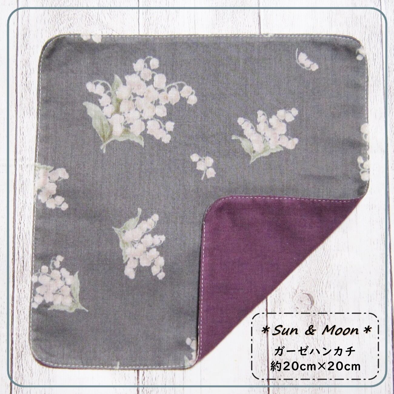 【子供のガーゼハンカチ】シングルガーゼ・可愛い、スズラン柄・チャコール