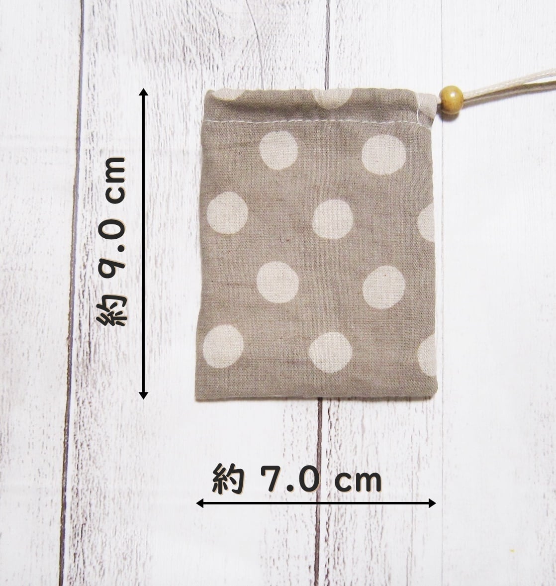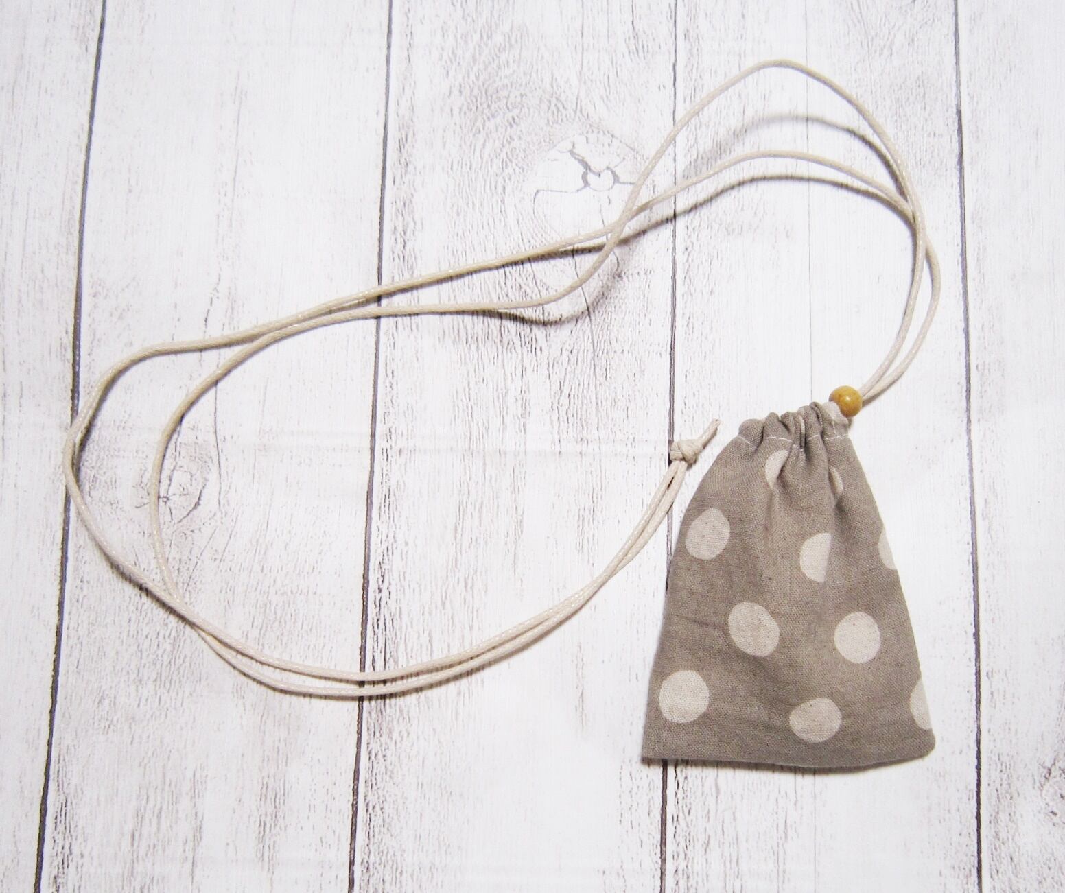 【水玉・グレー】首から下げられる、巾着袋・お守り袋・ストーン入れ・鍵袋