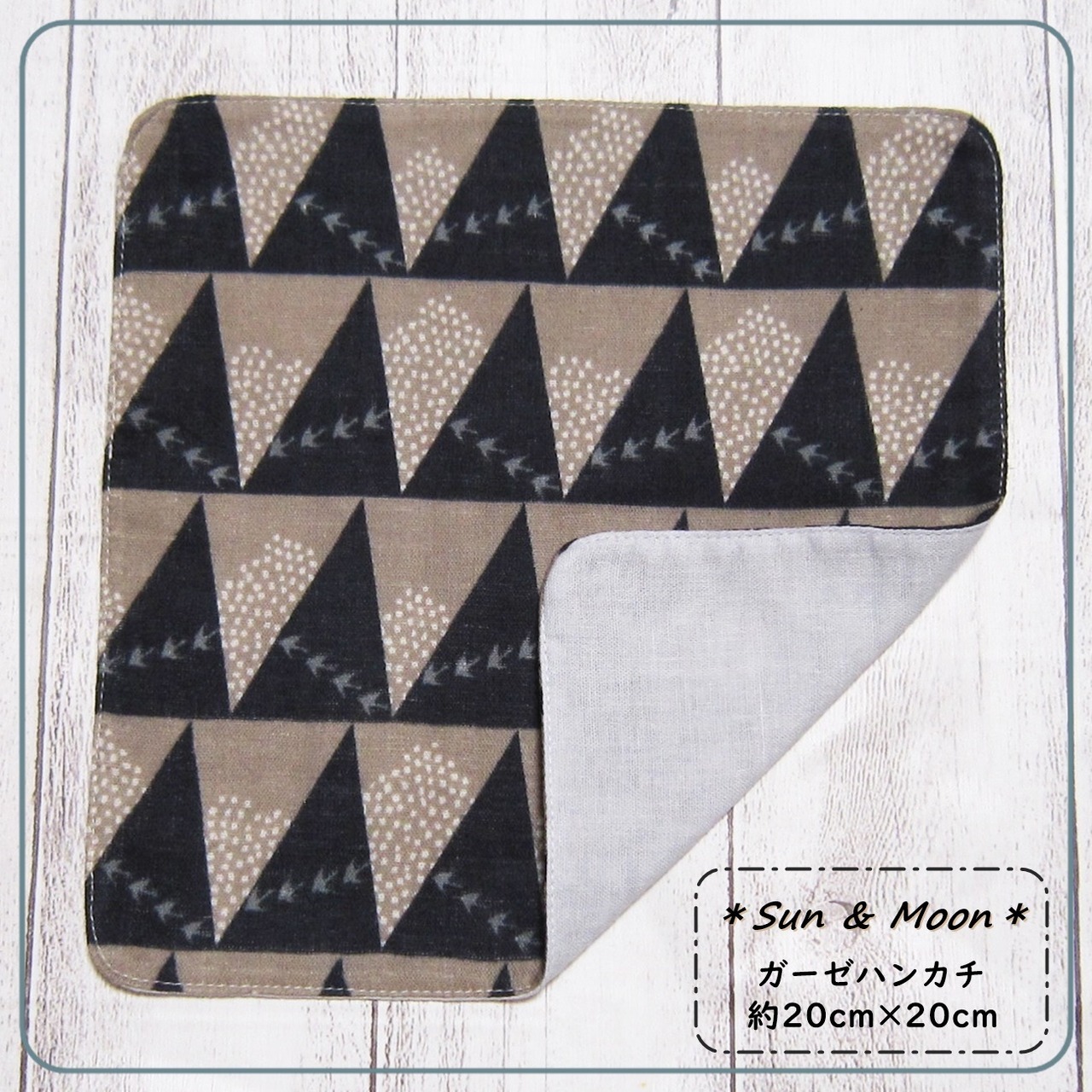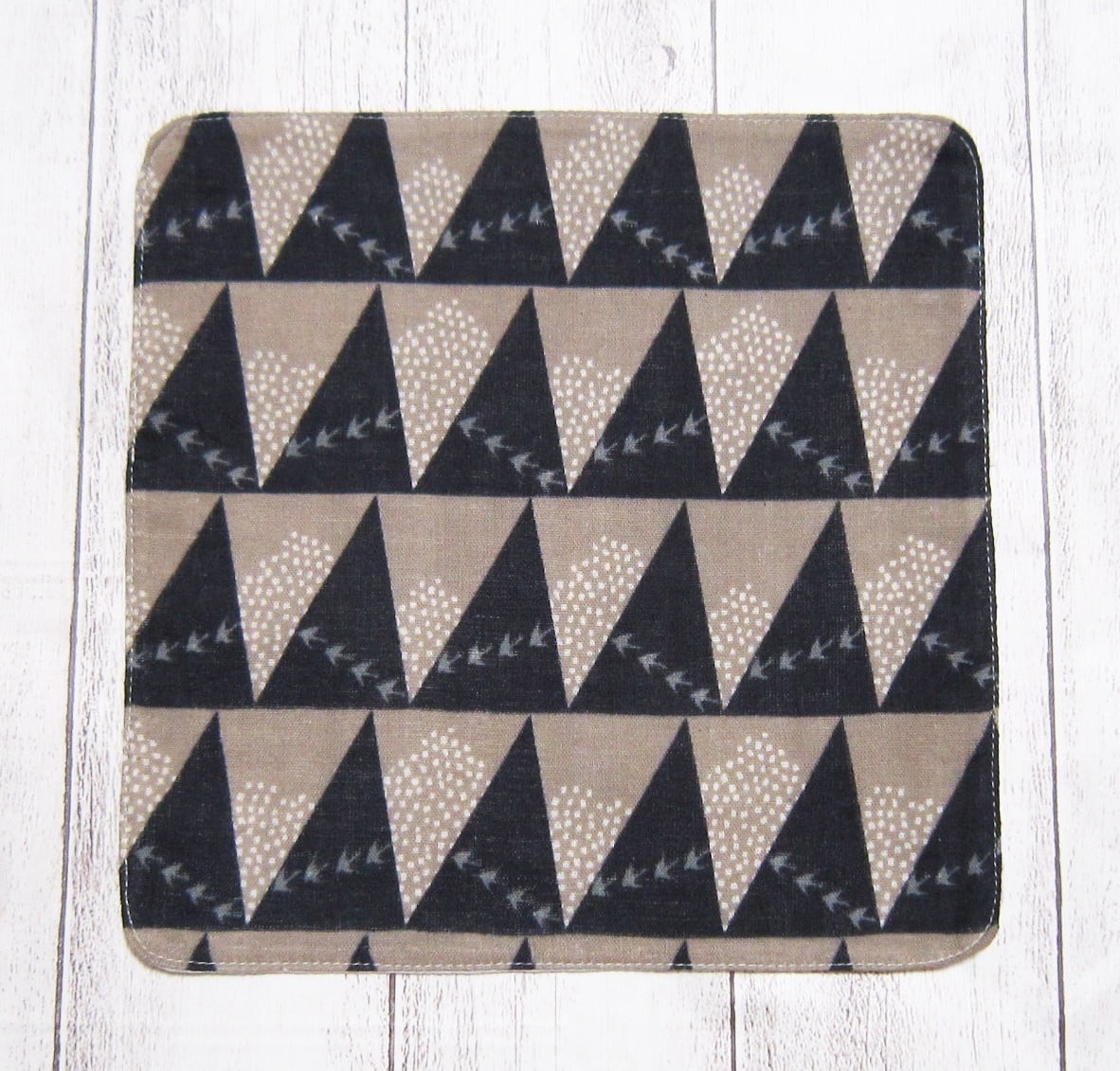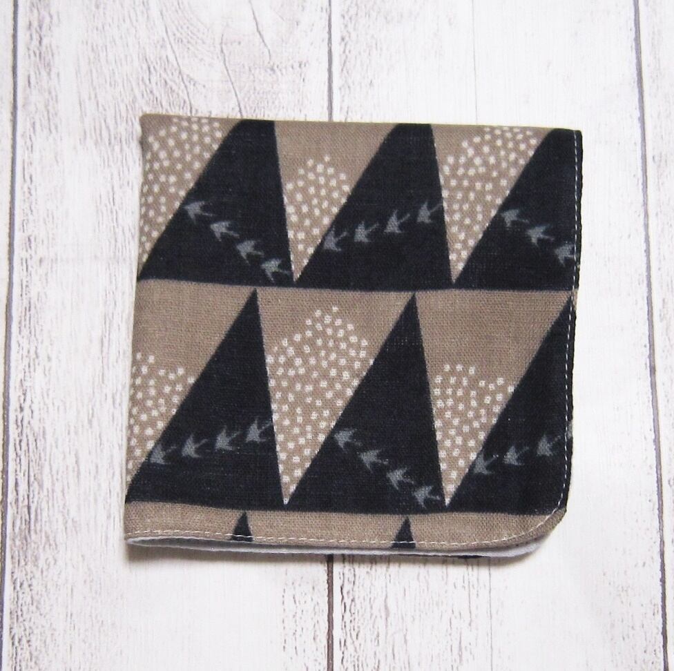 【子供のガーゼハンカチ】幾何学模様・三角と鳥・ブラウン系